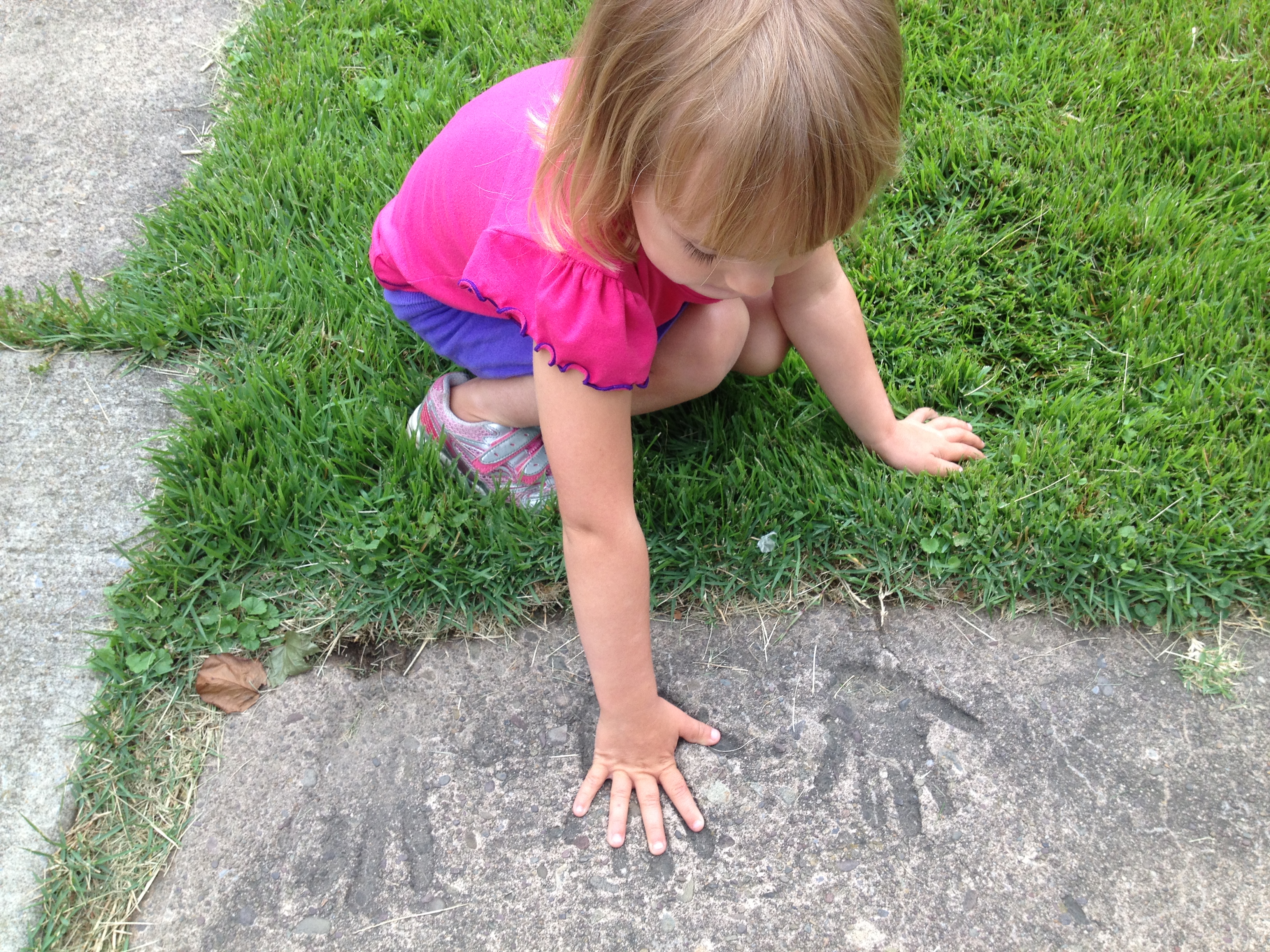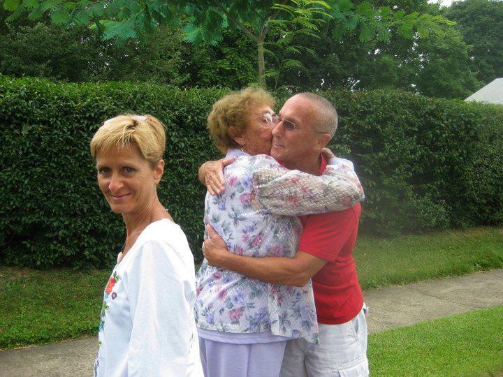 The pictures I’ve included are my granddaughter, Bella putting her hand in my hand print in the concrete sidewalk at 215 E. Central, my boyhood home. The one picture of me hugging my mom outside the home with Gayle at the side is symbolic of not leaving emotionally. The street sign represents the place I always thought of as home.